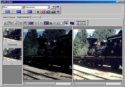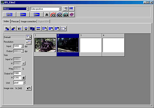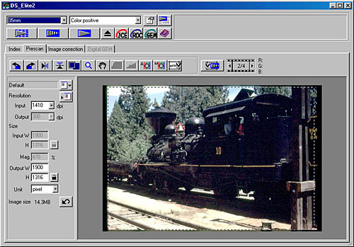 With all the foregoing commentary on Digital ICE, it's important to put it into perspective: Digital ICE is first and foremost a productivity enhancer. When looking at productivity though, you need to consider a range of other factors, most of which have to do with the user interface design. Because the DSEII's driver software produces accurate prescans that accurately reflect the effects of tone and color adjustments, a great deal of re-prescanning is avoided. In my opinion, this more than offsets additional time you may need to spend on spotting your images to remove the effects of dust and scratches