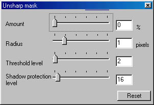 - Unsharp Mask: Calls up the Unsharp Mask window.