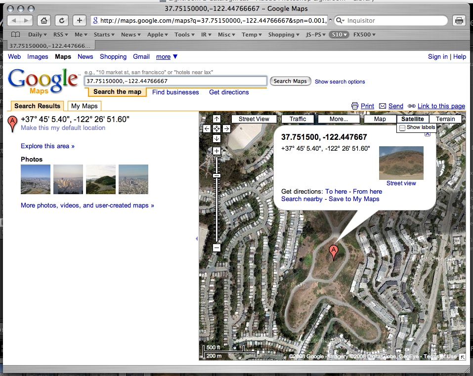 The Metadata section includes GPS data with a click box that will open your browser and show you the location of the image at Google maps.