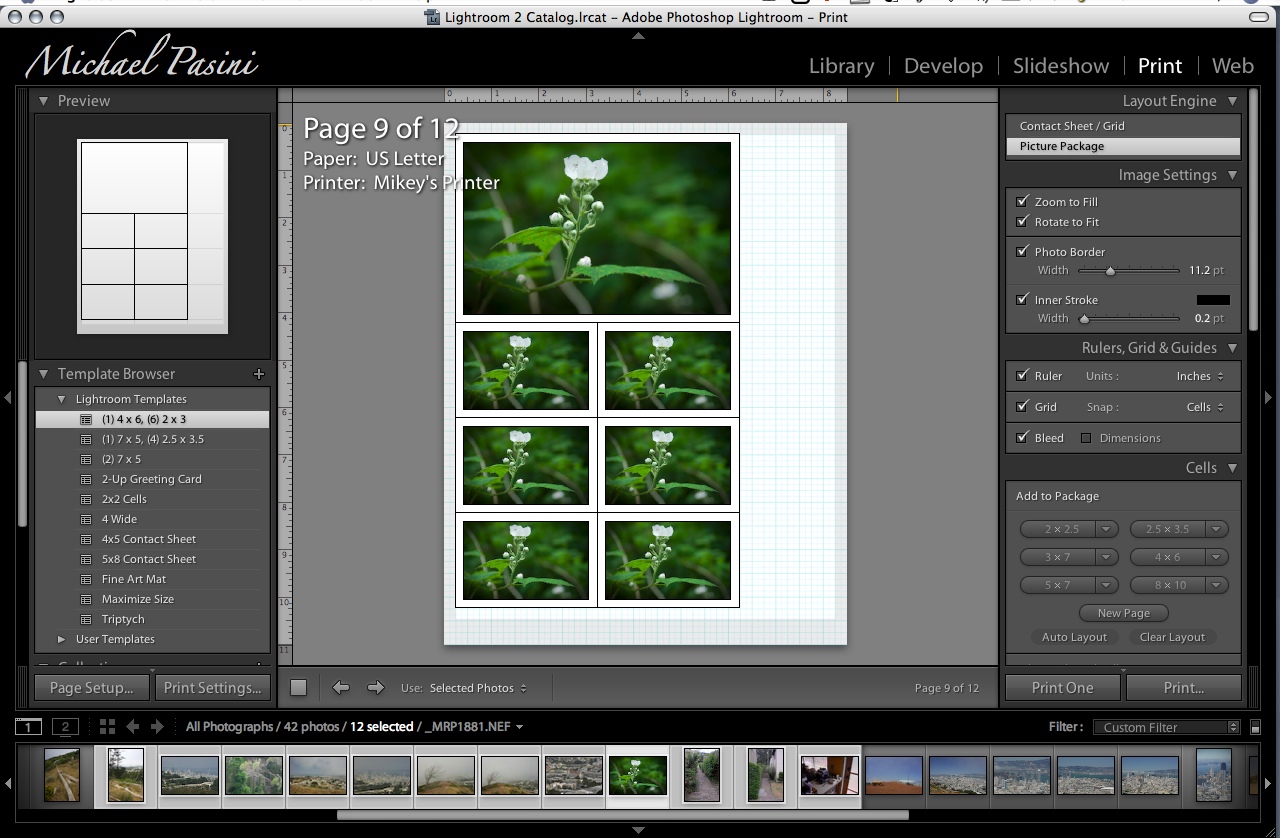 Print Module. The Print module now offers a layout editor with either a Contact Sheet/Grid (the previous approach) or Picture Package approach.