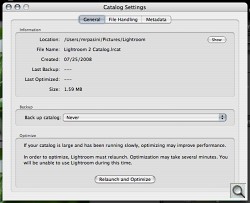 When first launched, Lightroom 2 asked if we wanted to upgrade the Lightroom 1.4 catalog it found or create a new Lightroom 2 catalog. We created a new catalog, which is still written in SQLite format.