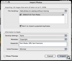 Import Settings. We save a lot of time by having Lightroom write our copyright to the Exif header of our images during the import process.
