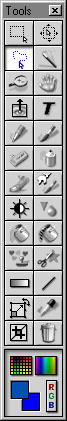 The tool bars around the sides and bottom of the screen are referred to as palettes. What's great about these palettes is that you can grab one with the mouse and drag it out to the center of the work space, where it turns into a small window which can be placed anywhere. The luxury of this is that you have a completely customizable work space set up for the way you work best.