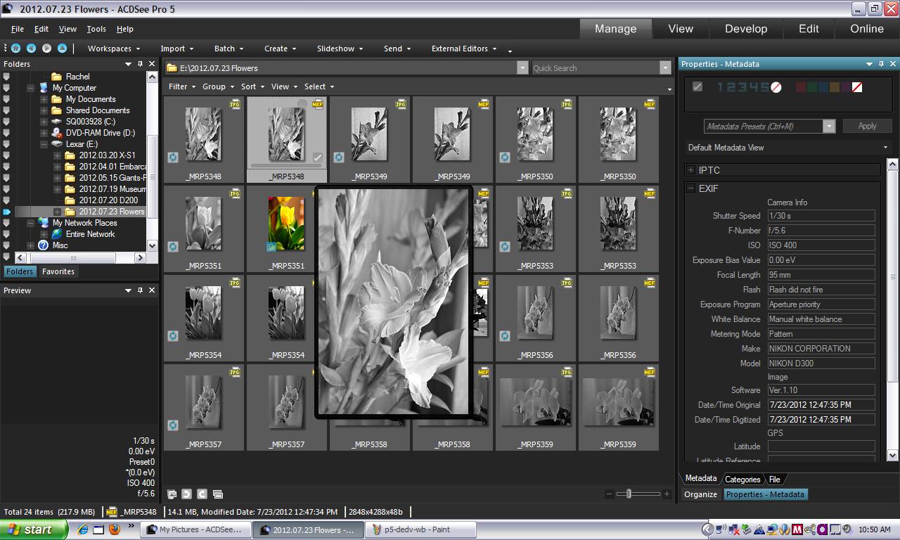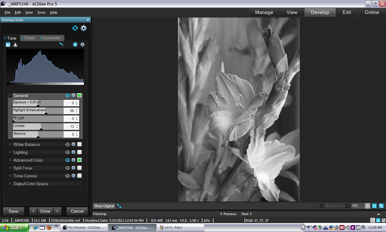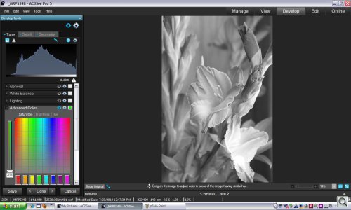 Because ACDSee Pro displays the Raw thumbnail, our View mode examination of the image was of the black and white image. So we evaluated focus and decided we could work with the image.