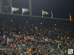 We had taken a shot of the upper deck of the ballpark at a night game, the stadium lights high above but directly in front of us. The scene seemed to come from another era.