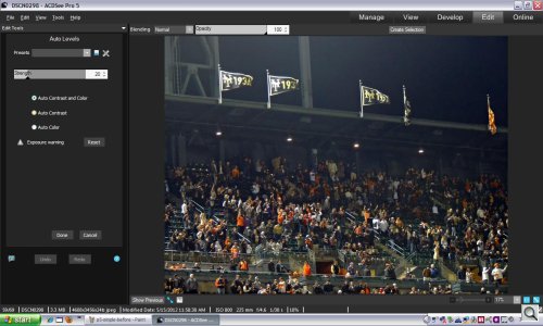 In practical terms, there isn't much of a difference between Auto Levels in ACDSee Pro and, say, Photoshop CS6. They are quick fixes with pleasing results. But Photoshop analyzes the image according to a database to determine the type of image before optimizing it. Adobe has also enhanced its Auto Levelsby skipping per channel optimizations in favor of these database optimizations. Then, too, you have a few more options and a live histogram.