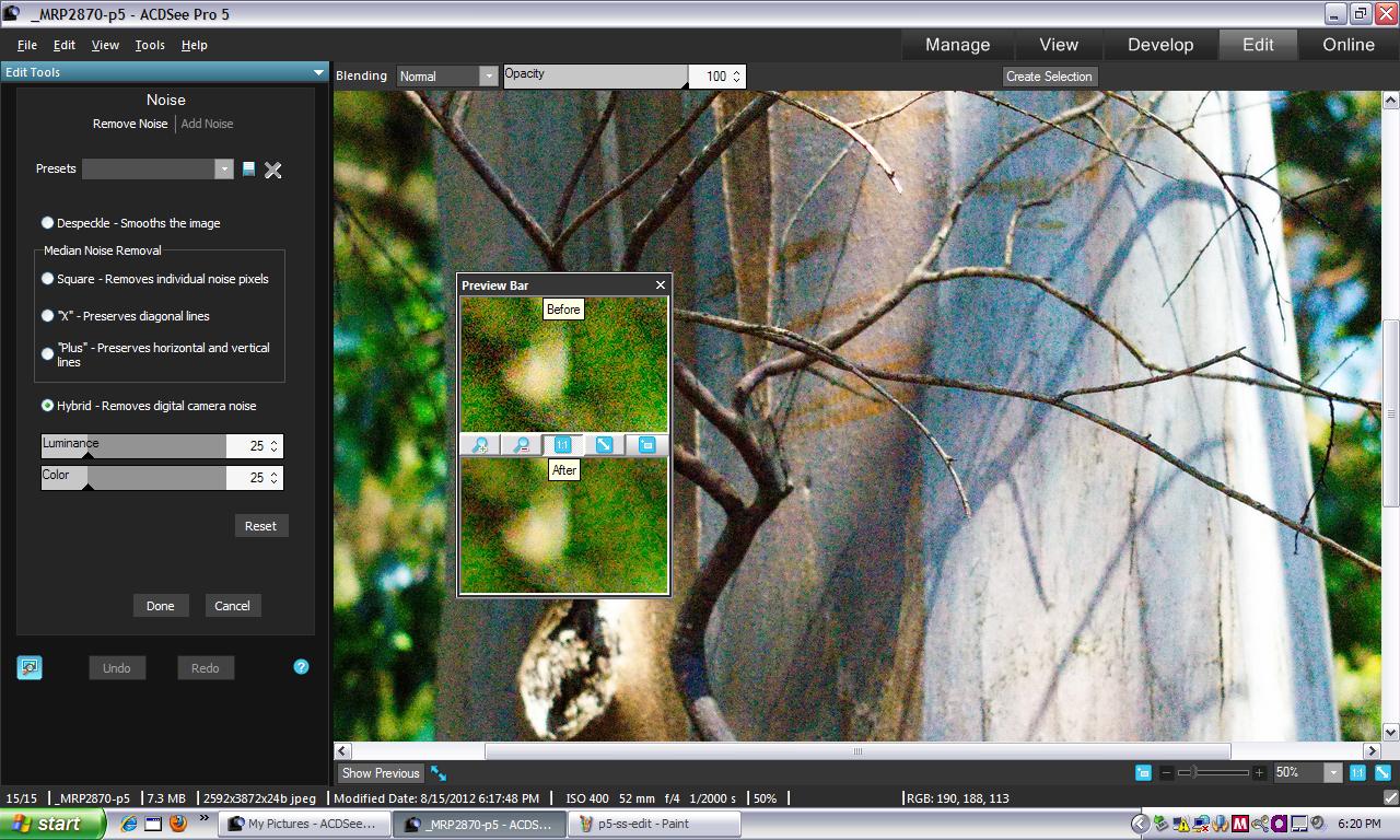 ACDSee Pro, though, made a better improvement on the first click than Photoshop C6. But we only had to select a better option in Photoshop to match it. Of course, we had to know about that, too.