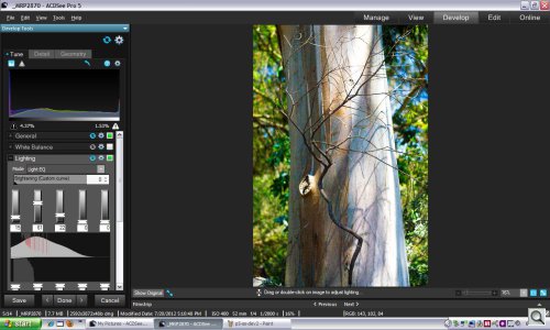 In Develop, changes are saved to an XMP sidecar file and in the ACDSee Pro database for both Raw files and JPEG images. For JPEGs, the changes are displayed in both Manage and View modes.