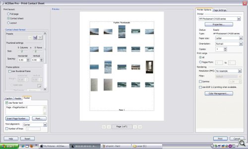 With ACDSee Pro, though, we found ourselves relying on the Manage mode for one important task: printing. You can print only from Manage mode after selecting a single image or a group of them. If you select a group of images, you can print a proofsheet pretty easily. We particularly liked the live preview that showed us our header and footer text (including page numbers), too.