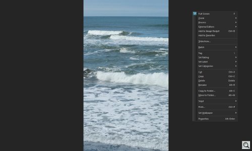 View mode might, at first glance, seem negligible but it has two modes itself. Normal mode displays the selected image but it's surrounded by a bottom toolbar (for zoom and scroll, among other things), a filmstrip (to navigate to other images) and a status bar to describe the currently displayed image.