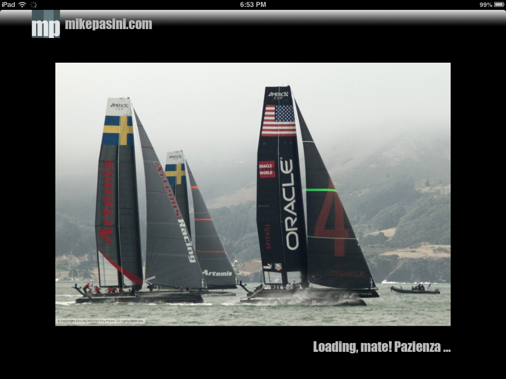 For the loading screens, we repeated the header at the top but then brought in one of the images from the slide show to fill the screen. We were going to drop in a montage of them but the single image looked very nice so we clocked out. At the bottom, we added a note that the images were loading. No sense being mysterious.