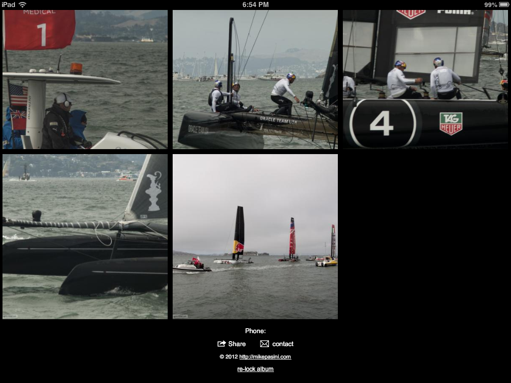 It was very attractive, giving the images predominance but with clickable contact information for email and phone. There is also an easy way to share the album on social networking sites, so your album can go viral very easily.