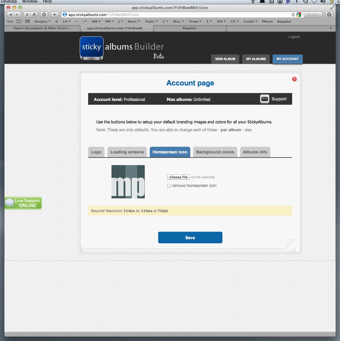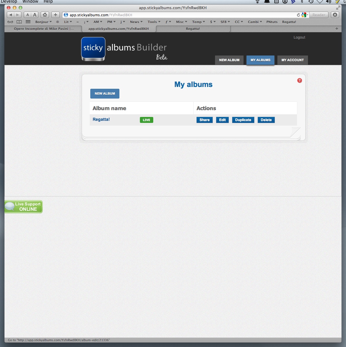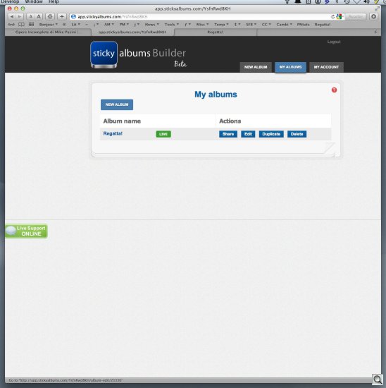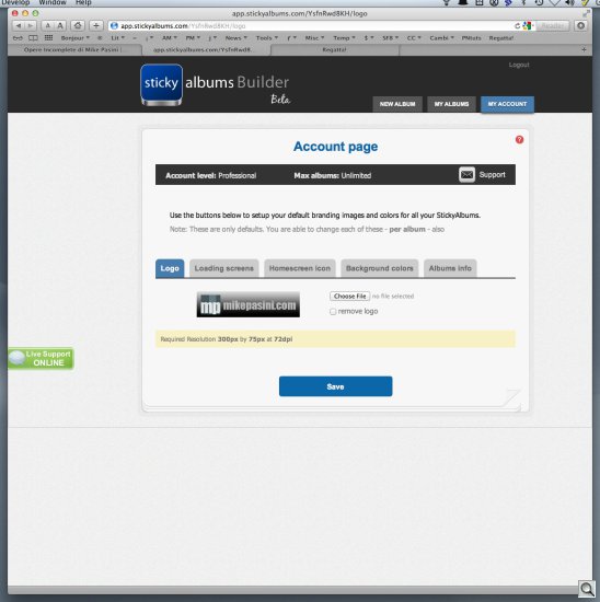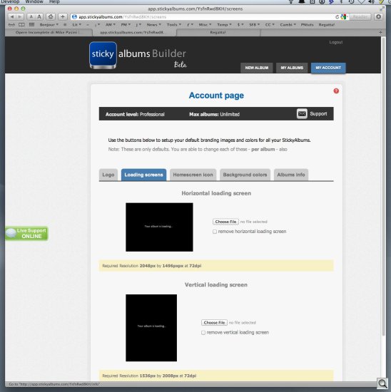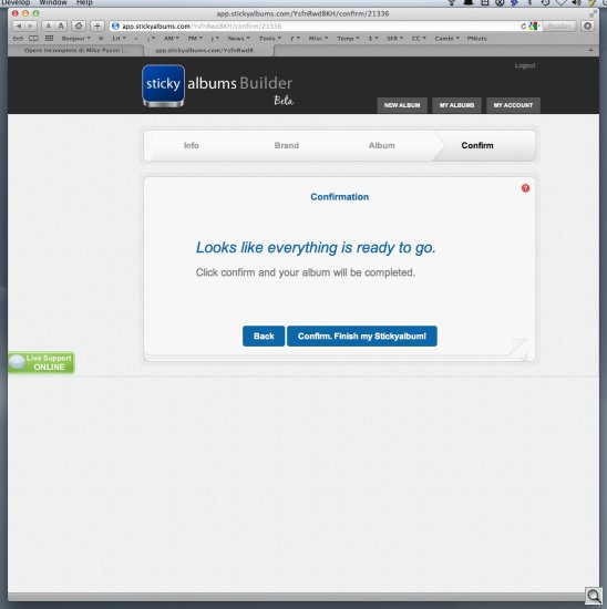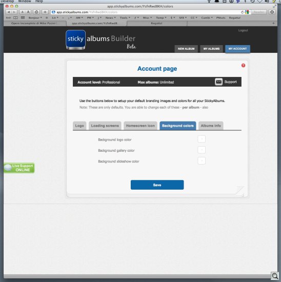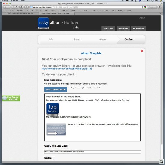 You may have noticed in some of the screen shots that live help is also available. There's a lime green button on the left margin for it. We never actually needed that but we're impressed that it's available. StickyAlbums really could teach a few major corporations how to conduct themselves.