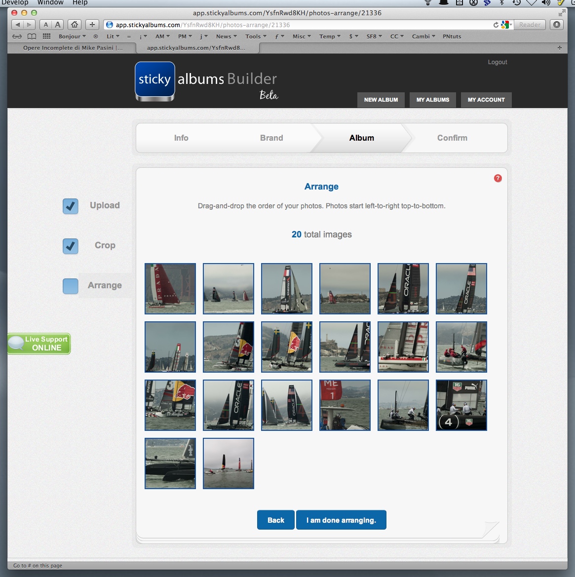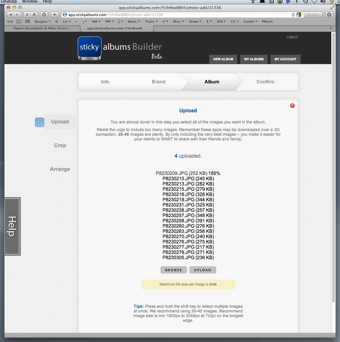 Then you upload your album images. Nate recommends Chrome or Firefox but we used Safari on Lion with no problem at all.