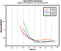 There's a distinctly different story when the lens is mounted on a full-frame body, however, with substantial (3/4 EV) corner shading appearing when the lens is used at its widest aperture, regardless of focal length. Only by ƒ/8 and smaller does corner shading become negligible.