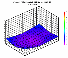 With the lens mounted on the Canon 7D, the 16-35mm ƒ/4L shows no real signs of corner shading. On the 1Ds mkIII however it's a different story: the worst results are observed at 16mm and ƒ/4, where the extreme corners are 1 1/4 stops darker than the center. Still at 16mm, no matter how much you stop down, there will always be at least a 3/4 stop differential; other focal lengths are a bit better, but only at 35mm is there only tangible evidence of corner shading.