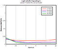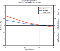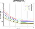 A note about the blur plots for this lens - Astute readers will note that the optimal performance appears to be somewhat better (lower BxU numbers) on the 5D than the 20D. We consider this to be an artifact of minor differences in the two cameras' pixel dimensions and in-camera sharpening processing, magnified by the extreme sensitivity of the DxO analysis application and the fine gradations of our graphing scheme. The colors on the graphs make it easy to see variations of considerably less than 1 BxU near the lower end of the graph's range. We've scaled the results to match the performance between cameras as best as possible, but our current gain-only normalization seems to leave the 5D's results looking slightly better at the "good" end of the scale when the "bad" end results are more or less in-line. Given that the differences seen for the optimal conditions are tiny, fractional-BxU unit variations, they really aren't statistically significant.