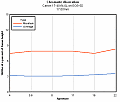The full-frame test results for the Canon 17-40mm f/4L demonstrate to some extent just how much full-frame cameras demand from even excellent lenses in the corners. The 17-40 f/4 is an excellent lens, remarkably so on the 20D. ON the 5D, while it's still excellent, some significant softness appears in the corners when shooting wide open. The good news though, is that closing down just one f-stop brings dramatic improvement, and performance at f/8 is truly excellent. At f/11, the corners flatten slightly more, but at the cost of a smidgen of center sharpness as diffraction starts to limit the resolution slightly. As you'd expect, both maximum and average chromatic aberration are a little higher on a full-frame body, due to the larger image circle the lens has to cover. Geometric distortion increases somewhat more relative to its sub-frame performance, particularly at longer focal lengths, reaching about 0.4% pincushion at 29mm, and increasing gradually from there to 40mm. Barrel distortion hits 1% at 17mm. Vignetting is also much more pronounced on the 5D than it was on the 20D, hitting a maximum of about 0.8 EV wide open at 17mm, and about 0.4EV wide open at 40mm. Light falloff does decrease as you stop down though, dropping by roughly half as you move from f/4 to f/8, and decreasing more gradually from there.