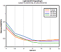 Figure 7 (below) summarizes the Condensed (averaged over all focal lengths) Shading performance for the Canon 70-200mm f/4L IS on both the 20D and 5D. As expected, the full-frame sensor of the 5D sees the outermost portions of the image from the lens and, in this region the light intensity decreases more noticeably (shading increases).