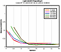 Mounted on a subframe (APS-C) sensor camera, light falloff isn't noticeable with this lens. On a full-frame camera such as the 1Ds Mark III, light falloff is only noticeable with the lens being used wide open; in this case, the extreme corners are about 2/3EV darker than the center. However, just stop the lens down by one stop, and this light falloff drops below 1/4EV, or essentially negligible.