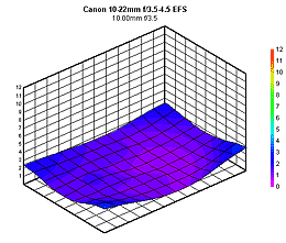 The Canon 10-22 EF-S is a surprisingly high quality optic, although one would perhaps expect that, given its premium pricing. It does unusually well wide open, although some softness creeps into the corners of the frame at its longest (22mm) focallength. It's "sweet spot" of maximum sharpness ranges from f/5.6-8.0 at 10mm, f/8 at 14mm, and f/8 at 22mm.