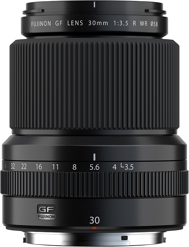 (From Fujifilm lens literature) FUJIFILM North America Corporation today announced the launch of the FUJINON GF30mmF3.5 R WR (GF30mmF3.5 R WR), a wide-angle prime lens with a focal length equivalent of 24mm (in the 35mm film format) for the FUJIFILM GFX System of large format*1 digital cameras.