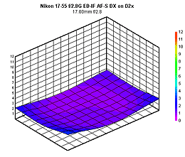 Bottom line, this is a very sharp lens with excellent characteristics wide open, although chromatic aberration, vignetting, and distortion are all a little high at 17mm. (DxO Optics Pro supports this lens on all current (10/18/2005) Nikon bodies except the D50, so the vignetting, CA, and distortion are easily dealt with.)
