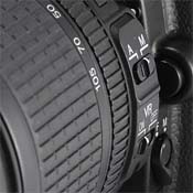 Compared to the 18-135mm, it's just slightly (3mm) longer and wider, and 35 grams heavier (420g), no doubt to accommodate the VR system. It uses the same 67mm filters, which don't rotate during focus or zoom operation. The lens doesn't have the fit and finish of previous kit lenses; there is no distance scale, and consequently no depth-of-field markings. Focal lengths are marked on the lens near the zoom ring, but that's about it. Two control switches are available on the lens' left side: one which enables or disables autofocus (A or M) and one which enables or disables vibration reduction (ON or OFF).