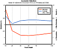 From 24mm onwards, we see a complex distortion profile: the edges of the image exhibit pincushion-style distortion (the edges of the image are ''pulled'' into the frame) while the center exhibits barrel distortion. The effect isn't dramatically evident - but if you need your photographs to show straight lines as truly straight, then you're in for a bit of a surprise. Straight lines will show the ''moustache'' effect, where they bend one way at one edge, another way in the center, and then back the first way at the other edge. This form of distortion is fairly consistent from 50-105mm; fortunately, it's not especially severe, at around 0.4% barrel distortion in the center and -0.7% pincushion distortion at the edges.