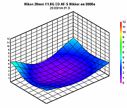 The Nikon 20mm ƒ/1.8G ED AF-S is a wide-angle lens, so it's no surprise to see barrel distortion in its test results. It shows no more or less distortion than you might expect -- about +0.5% in the corners on the full-frame D800E.
