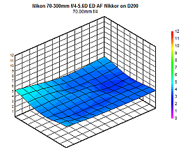 The Nikkor 70-300mm f/4-5.6D's chromatic aberration pretty much follows its sharpness behavior: It's not at all bad from 70-135mm, but deteriorates from there, with very high CA in the corners and edges at 300mm.