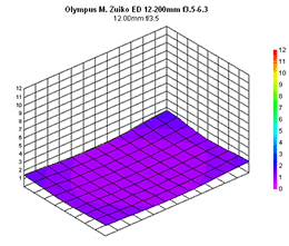 The only situation where there is any corner shading to speak of is when the lens is used at its widest focal length; in this case, the extreme corners of an image captured will be a quarter-stop darker than the rest of the image. Outside of this parameter, lens shading isn't really a factor, falling off almost completely once you reach 75mm.