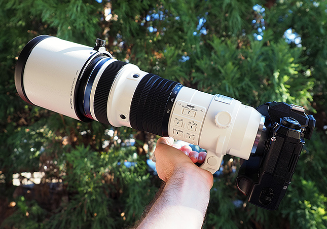 It probably goes without saying, but the 150-400mm Pro lens is Olympus' largest Micro Four Thirds-format lens released so far. Olympus has made some similarly-sized lenses for their older Four Thirds DSLR system, such as the Zuiko 300mm f/2.8 and Zuiko 90-250mm f/2.8 lenses, but those are essentially, if not officially, discontinued these days. The new 150-400mm is, however, similar in length to that old 300mm f/2.8 lens, measuring in at a length of about 11.5 inches long (minus the lens hood). The diameter is smaller, though, at about 4.5 inches at the end of the lens. (The 150-400mm does accept screw-on filters, using a 95mm filter thread size.)