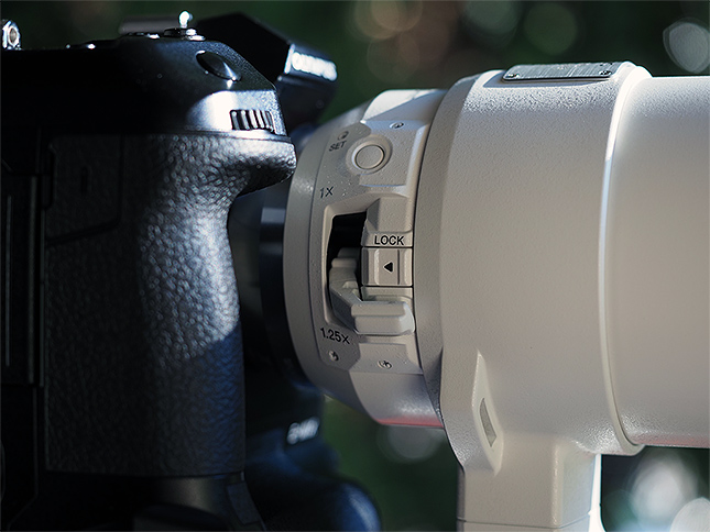 Right next to you hand, you have quick access to the teleconverter lever as well as the focus SET button. |