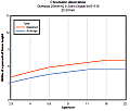 The resistance of the lens to chromatic aberration is at its best when used at wider apertures, achieving its best results shot wide open at ƒ/2.8. At this point chromatic aberration is evident only at 3/100ths of a percent of frame height on average, and 4/100ths in the corners. This performance degrades as the lens is stopped down, reaching its ''worst'' results for chromatic aberration at ƒ/16 and ƒ/22 (5/100ths and 7/100ths respectively).