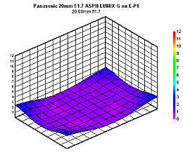 We've confirmed that the Olympus E-P1 performs some image post-processing in camera, reducing the effect of distortion. Our testing shows that for the 20mm ƒ/1.7, distortion is almost non-existent, at just +0.1% barrel distortion in the corners.