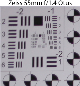 The Zeiss 55mm Otus lens shows slightly sharper corners on a sub-frame camera at ƒ/1.4, than does the Sigma, but this difference becomes negligible at ƒ/2.
