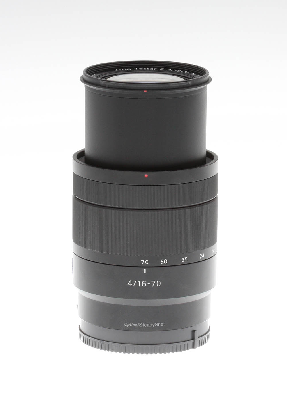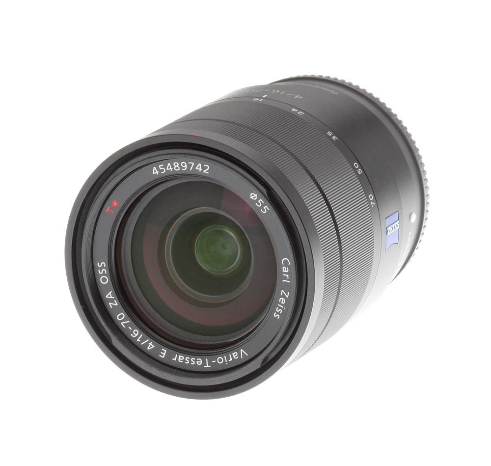 Part of Sony's premium lens lineup, the 16-70mm Zeiss uses "Advanced Aspherical lens" (AA lens) technology, which combines four aspherical elements with one ED glass element to control chromatic aberration as well as make for a compact and lightweight design. The lens also features Zeiss's T* coating for reduced glare and ghosting effects and Sony's Optical SteadyShot image stabilization technology.