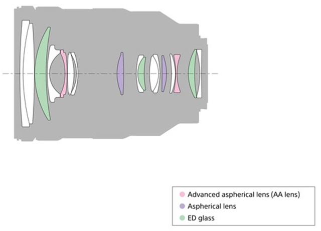 Sony FE 24-105mm F4 G OSS' optical design. Image courtesy of Sony. |