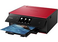 • Canon PIXMA TS9020, $199.99: Red/Black and White/Black •