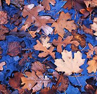 Sometimes it isn't the large scene which delivers the best photographic possibilities. Horne was hiking and saw many fallen leaves in a small puddle surrounded by red sand. It's a simple scene but it offers a very interesting contrast and some lovely details.